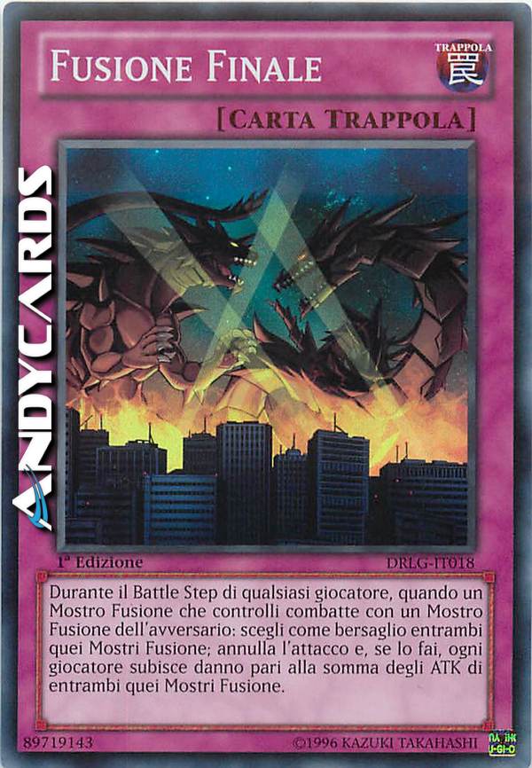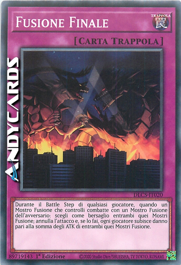 Durante la Battle Step di qualsiasi giocatore, quando un Mostro Fusione che controlli combatto con un Mostro Fusione dell'avversario: scegli come bersaglio entrambi quei mostri; annulla l'attacco e , se lo fai, ogni giocatore subisce danno pari alla somma degli ATK di entrambi quei Mostri Fusione.