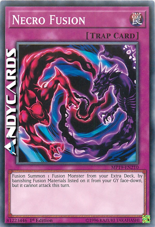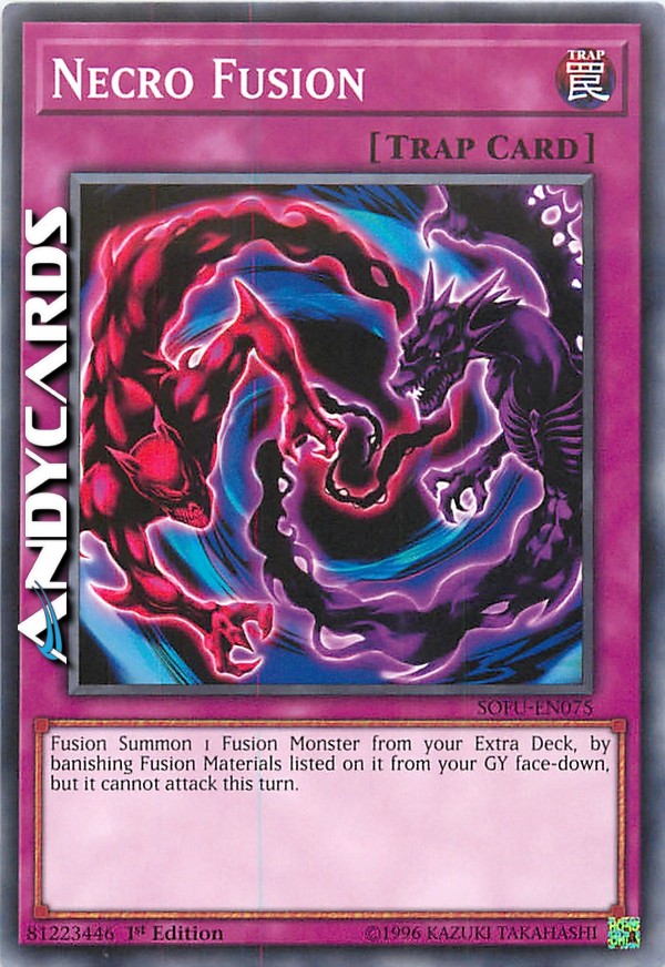 Evoca tramite Fusione 1 Mostro Fusione dal tuo Extra Deck, bandendo i Materiali da Fusione indicati su di esso dal tuo Cimitero coperti, ma esso non può attaccare in questo turno.