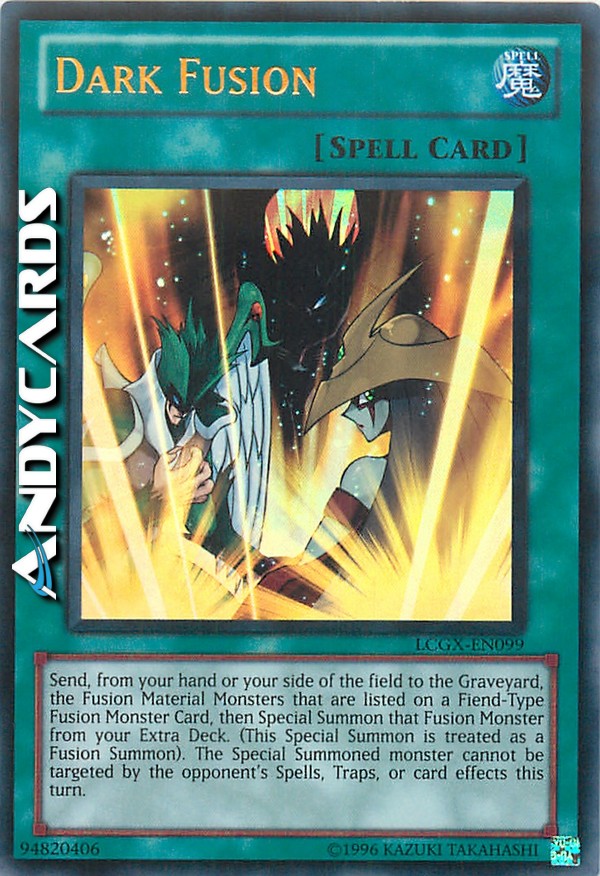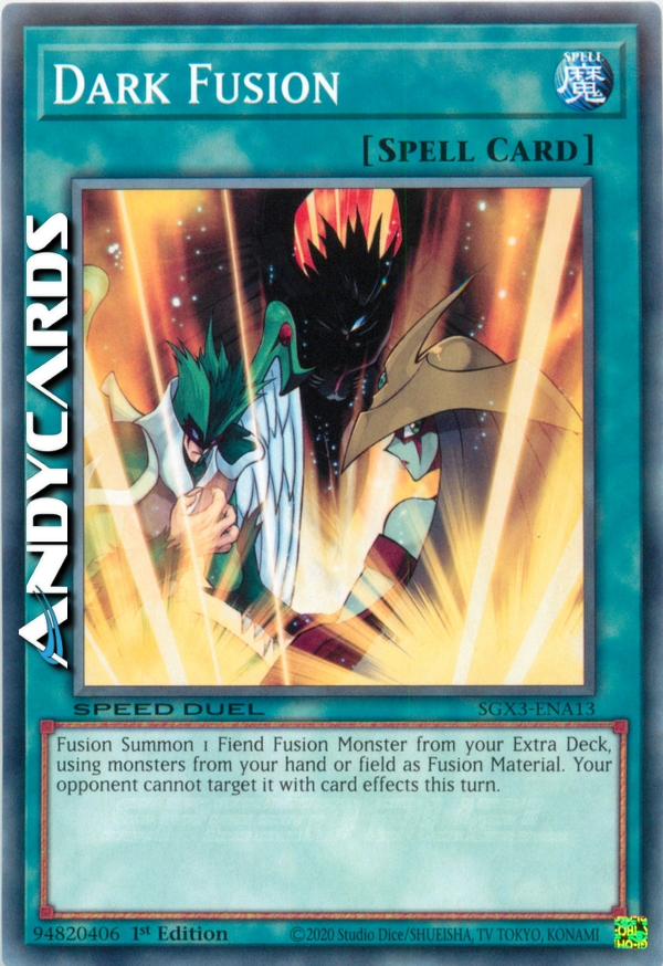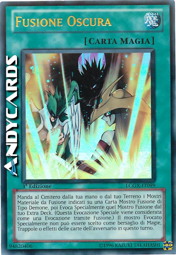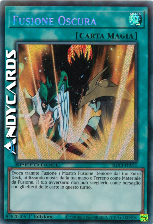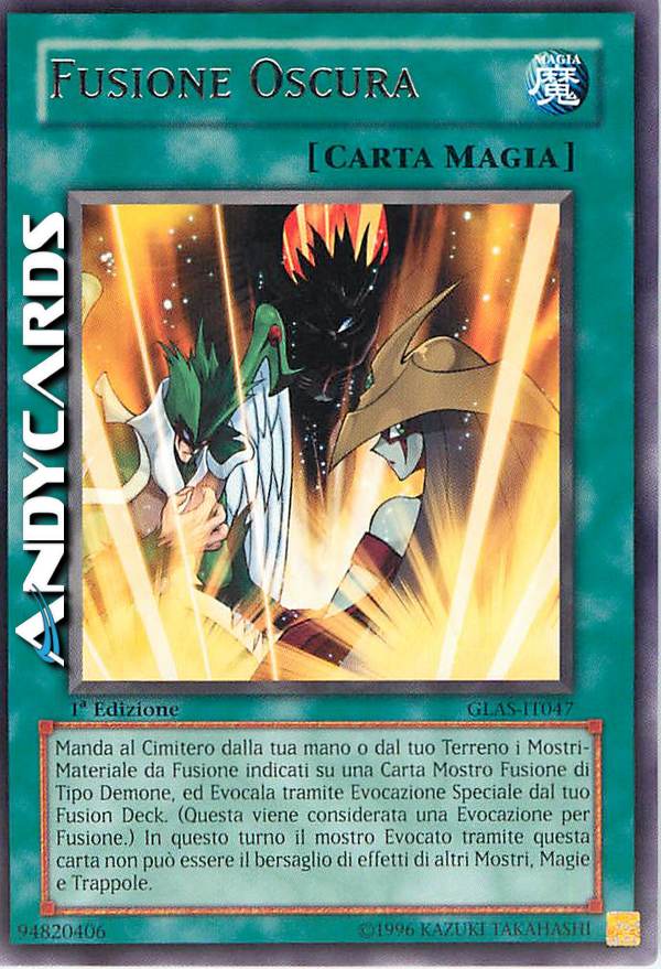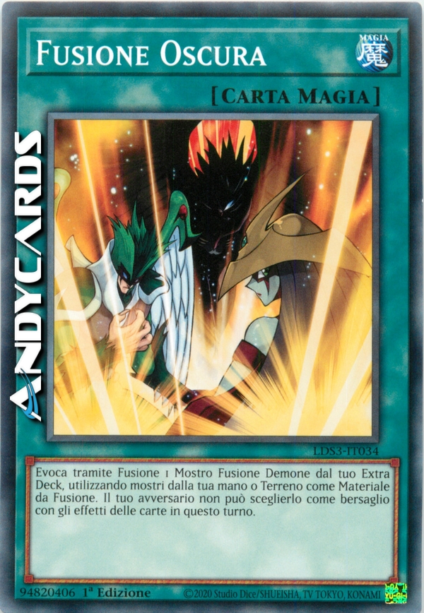 Evoca tramite Fusione 1 Mostro Fusione Demone dal tuo Extra Deck, utilizzando mostri dalla tua mano o Terreno come Materiale da Fusione. Il tuo avversario non può sceglierlo come bersaglio con gli effetti delle carte in questo turno.