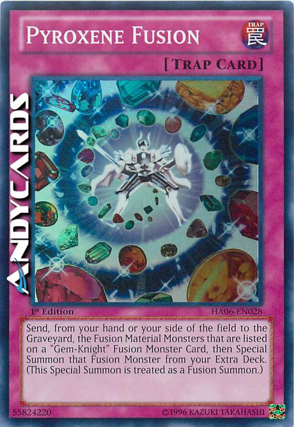 Send, from your hand or your side of the field to the Graveyard, the Fusion Material Monsters that are listed on a "Gem-Knight" Fusion Monster Card, then Special Summon that Fusion Monster from the Extra Deck. (This Special Summon is treated as a Fusion Summon.)