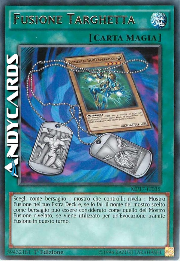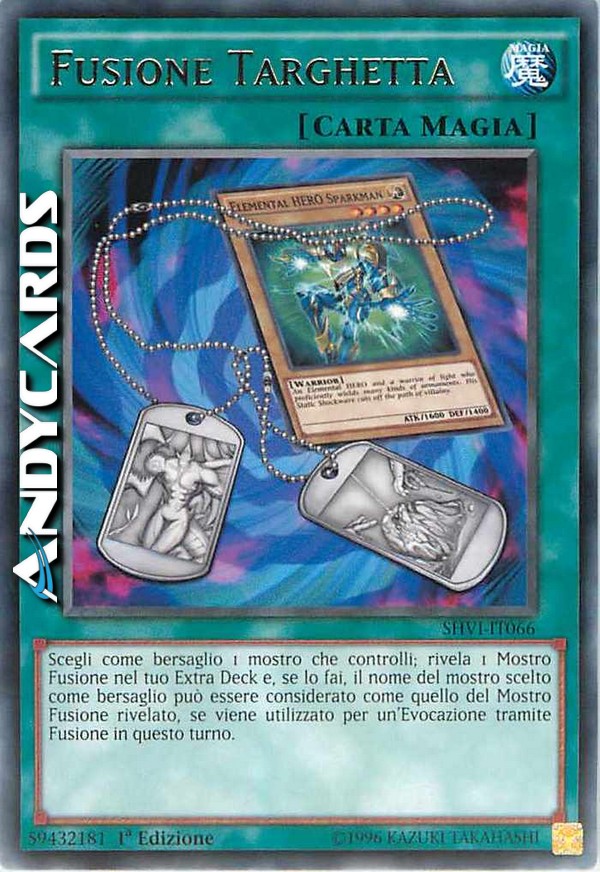 Scegli come bersaglio 1 mostro che controlli; rivela 1 Mostro Fusione nel tuo Extra Deck e, se lo fai, il nome del mostro scelto come bersaglio può essere considerato come quello del Mostro Fusione rivelato, se viene utilizzato per un'Evocazione tramite Fusione in questo turno.