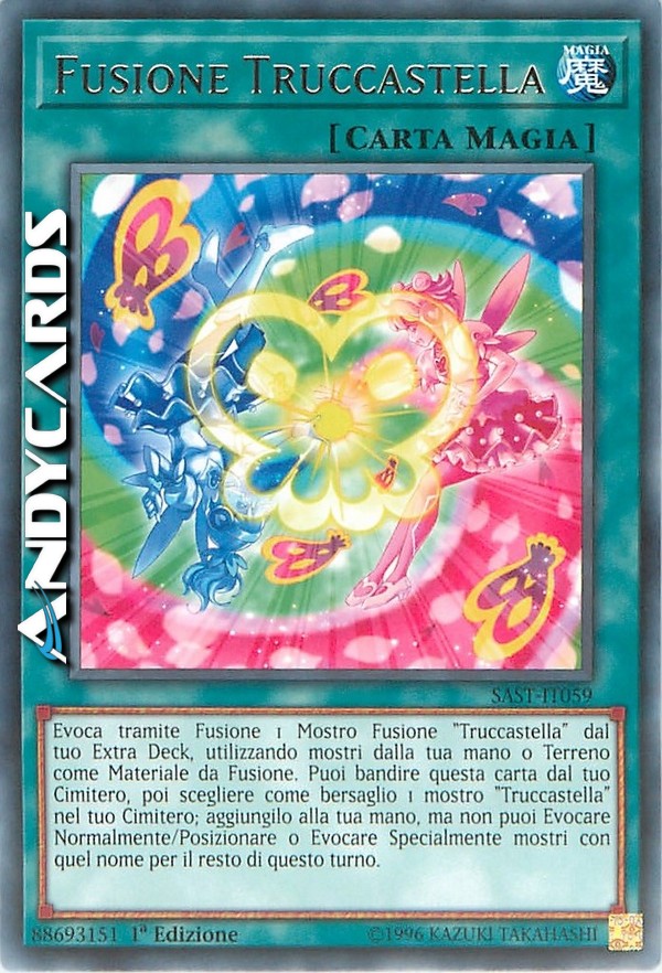 Evoca tramite Fusione 1 Mostro Fusione "Truccastella" dal tuo Extra Deck, utilizzando mostri dalla tua mano o Terreno come Materiale da Fusione. Puoi bandire questa carta dal tuo Cimitero, poi scegliere come bersaglio 1 mostro "Truccastella" nel tuo Cimitero; aggiungilo alla tua mano, ma non puoi Evocare Normalmente/Posizionare o Evocare Specialmente mostri con quel nome per il resto di questo turno.