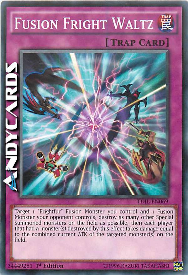 Target 1 "Frightfur" Fusion Monster you control and 1 Fusion Monster your opponent controls; destroy as many other Special Summoned monsters on the field as possible, then each player that had a monster(s) destroyed by this effect takes damage equal to the combined current ATK of the targeted monster(s) on the field.