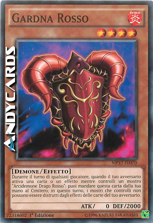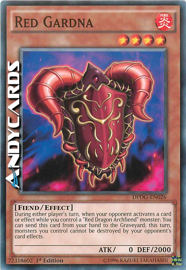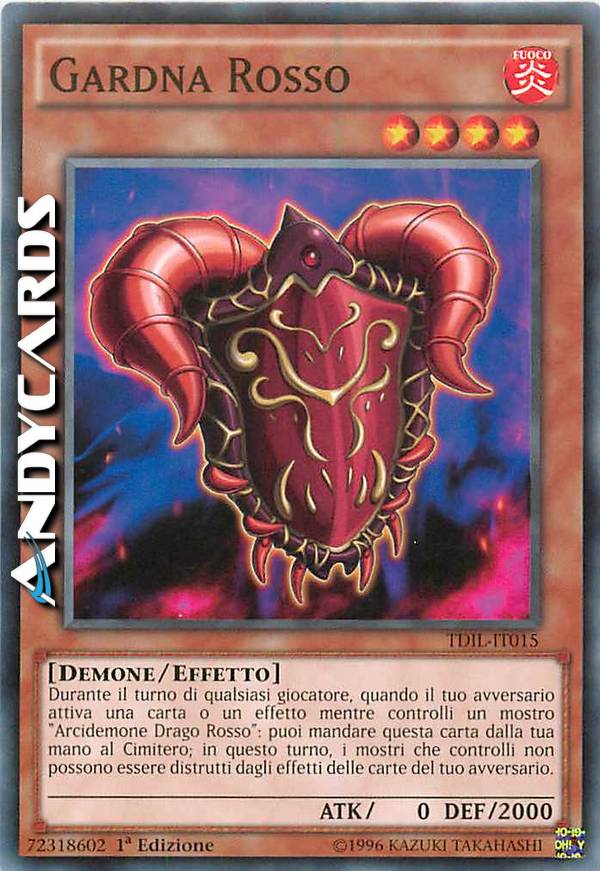 Durante il turno di qualsiasi giocatore, quando il tuo avversario attiva una carta o un effetto mentre controlli un mostro "Arcidemone Drago Rosso": puoi mandare questa carta dalla tua mano al Cimitero; in questo turno, i mostri che controlli non possono essere distrutti dagli effetti delle carte del tuo avversario.