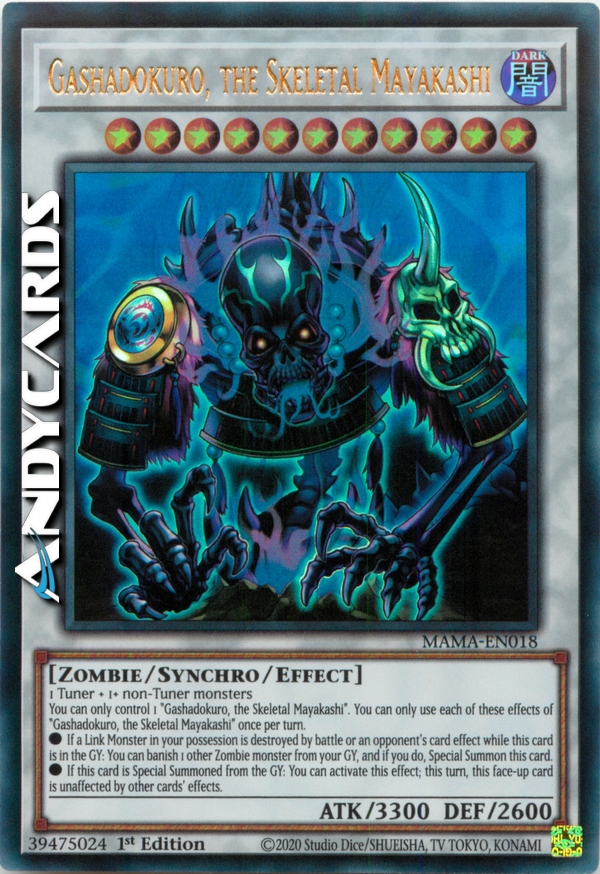 Puoi controllare solo 1 "Gashadokuro, il Mayakashi Scheletrico". Puoi utilizzare ognuno di questi effetti di "Gashadokuro, il Mayakashi Scheletrico" una sola volta per turno.