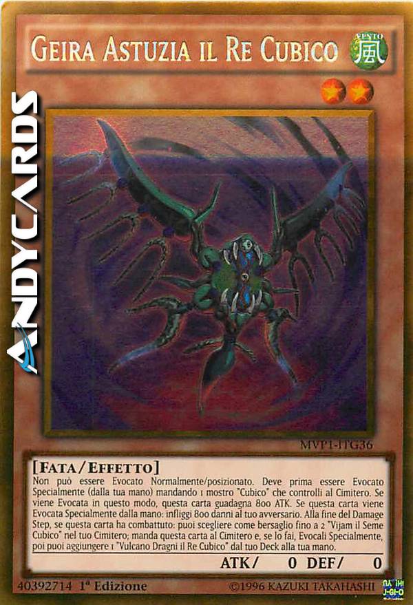 Non può essere Evocato Normalmente/posizionato. Deve prima essere Evocato Specialmente (dalla tua mano) mandando 1 mostro "Cubico" che controlli al Cimitero. Se viene Evocata in questo modo, questa carta guadagna 800 ATK. Se questa carta viene Evocata Specialmente dalla mano: infliggi 800 danni al tuo avversario. Alla fine del Damage Step, se questa carta ha combattuto: puoi scegliere come bersaglio fino a 2 "Vijam il Seme Cubico" nel tuo Cimitero; manda questa carta al Cimitero e, se lo fai, Evocali Specialmente, poi puoi aggiungere 1 "Vulcano Dragni il Re Cubico" dal tuo Deck alla tua mano.