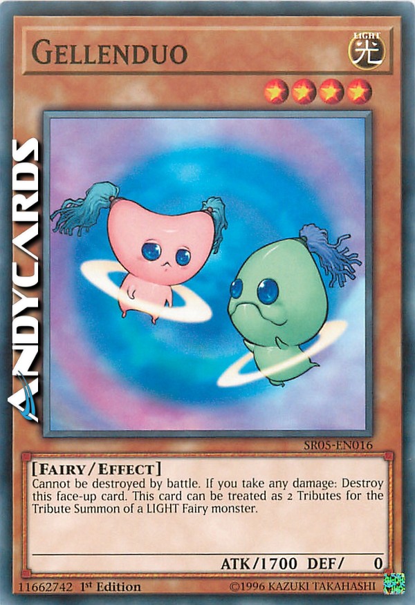 Questa carta non può essere distrutta in battaglia. Quando il controllore di questa carta riceve qualsiasi danno, distruggi questa carta. Se Evochi con una Evocazione tramite Tributo un mostro LUCE di Tipo Fata, puoi considerare questo mostro come 2 Mostri Tributo per l'Evocazione tramite Tributo.