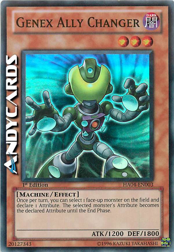 Once per turn, you can select 1 face-up monster on the field and declare 1 Attribute. That monster's Attribute is treated as the declared Attribute, until the End Phase.