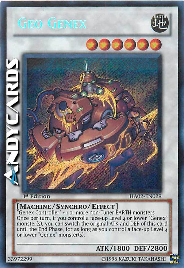 1 "Genex Controller" + 1 or more EARTH non-Tuner monsters. Once per turn, if you control a face-up Level 4 or lower "Genex" monster(s), you can switch the original ATK and DEF of this card until the End Phase, for as long as you control a face-up level 4 or lower "Genex" monster(s).