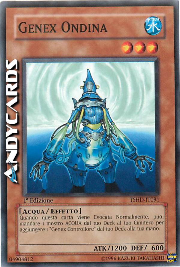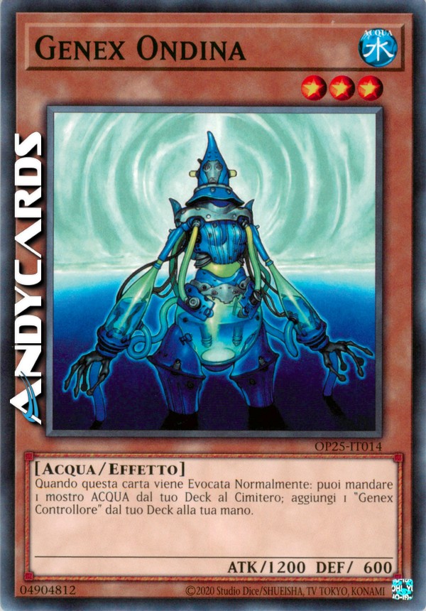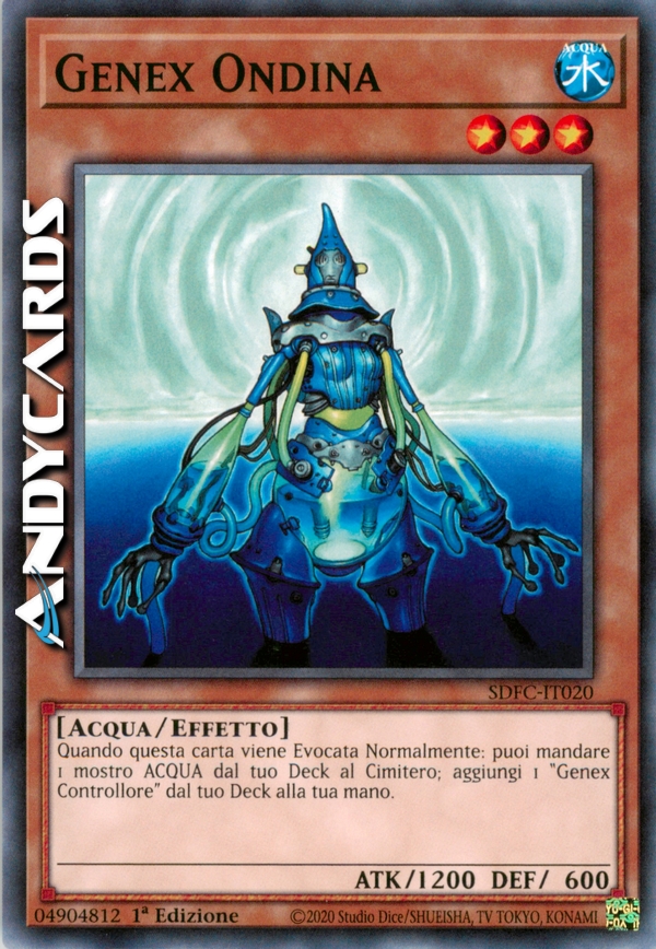 Quando questa carta viene Evocata Normalmente: puoi mandare 1 mostro ACQUA dal tuo Deck al Cimitero; aggiungi 1 "Genex Controllore" dal tuo Deck alla tua mano.