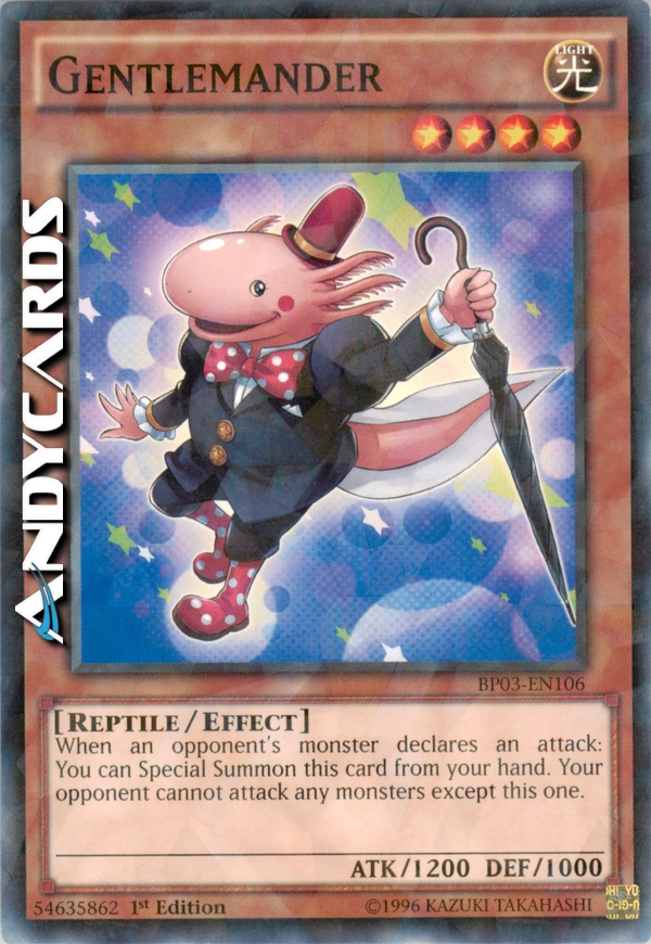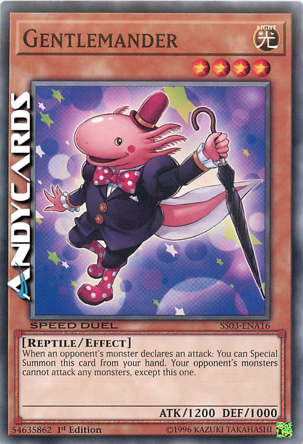 Quando un mostro dell'avversario dichiara un attacco: puoi Evocare Specialmente questa carta dalla tua mano. Il tuo avversario non può attaccare nessun mostro eccetto questo.