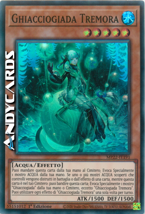 Puoi mandare questa carta dalla tua mano al Cimitero; Evoca Specialmente 1 mostro ACQUA dalla tua mano. Se uno o più mostri ACQUA scoperti che controlli vengono distrutti in battaglia o dall'effetto di una carta, mentre questa carta è nel tuo Cimitero: puoi bandire questa carta; Evoca Specialmente 1 mostro "Ghiacciogiada" dalla tua mano o Cimitero, eccetto "Ghiacciogiada Tremora". Puoi utilizzare ogni effetto di "Ghiacciogiada Tremora" una sola volta per turno.