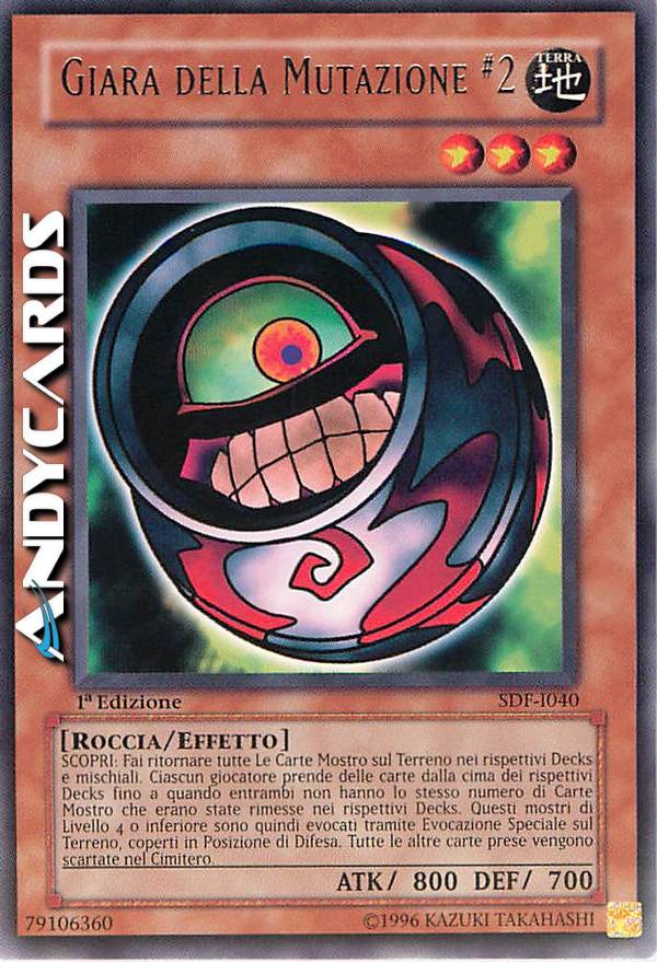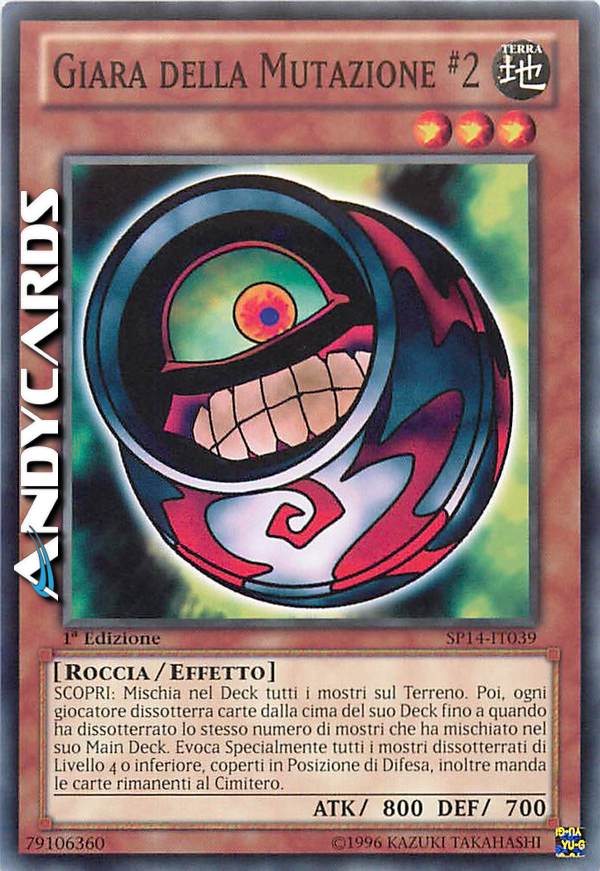 SCOPRI: Mischia nel Deck tutti i mostri sul Terreno. Poi, ogni giocatore dissotterra carte dalla cima del suo Deck fino a quando ha dissotterrato lo stesso numero di mostri che ha mischiato nel suo Main Deck. Evoca Specialmente tutti i mostri dissotterrati di Livello 4 o inferiore, coperti in Posizione di Difesa, inoltre manda le carte rimanenti al Cimitero.