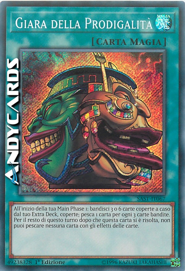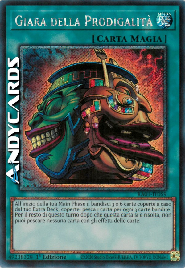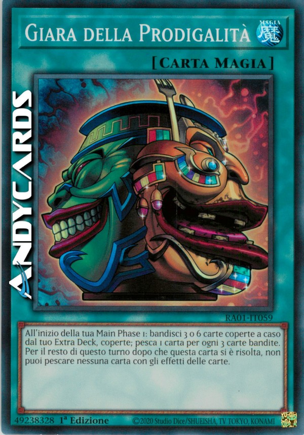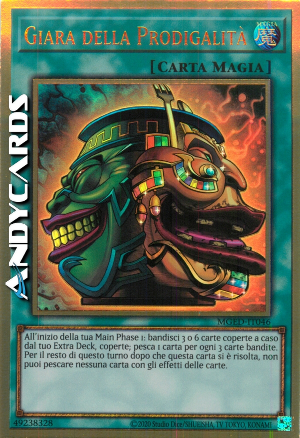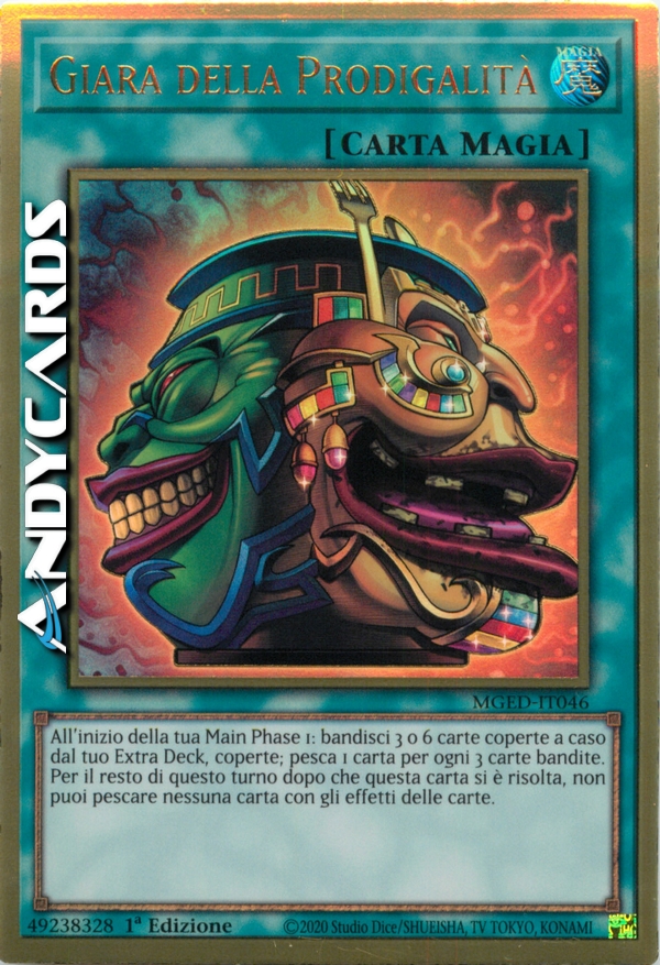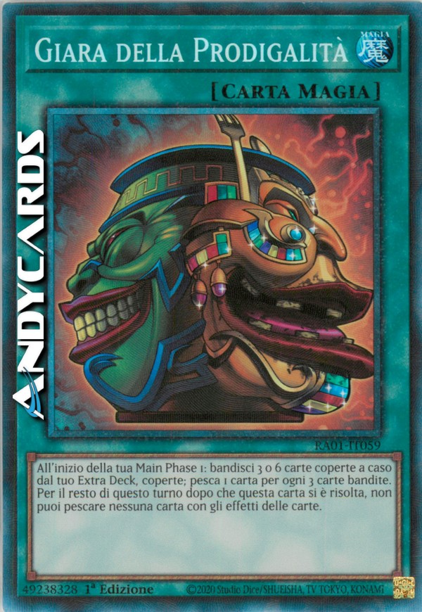 All'inizio della tua Main Phase 1: bandisci 3 o 6 carte coperte a caso dal tuo Extra Deck, coperte; pesca 1 carta per ogni 3 carte bandite. Per il resto di questo turno dopo che questa carta si è risolta, non puoi pescare nessuna carta con gli effetti delle carte.