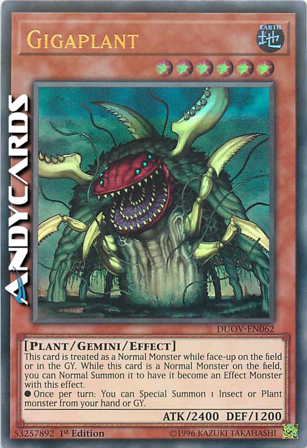 This card is treated as a Normal Monster while face-up on the field or in the Graveyard. While this card is face-up on the field, you can Normal Summon it to have it be treated as an Effect Monster with this effect: •Once per turn, you can Special Summon 1 Insect-Type or Plant-Type monster from your hand or Graveyard.