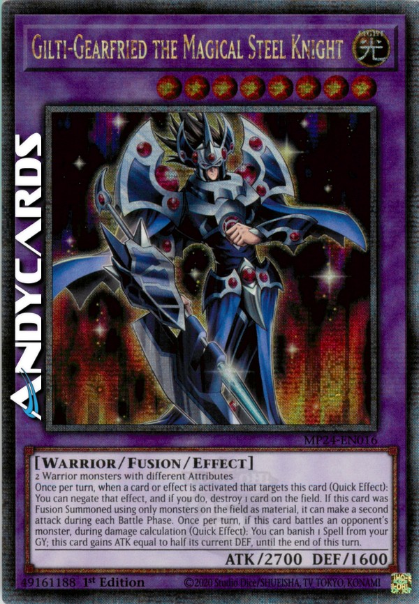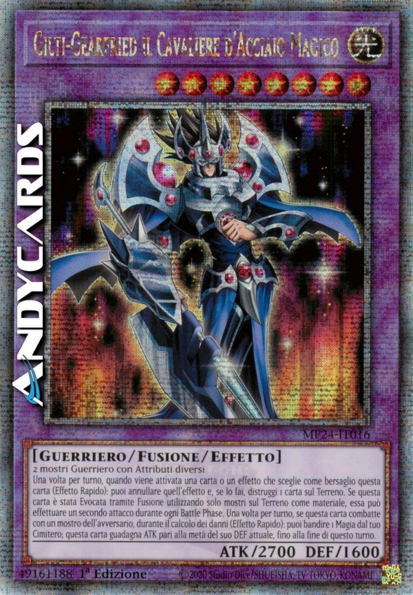 Una volta per turno, quando viene attivata una carta o un effetto che sceglie come bersaglio questa carta (Effetto Rapido): puoi annullare quell'effetto e, se lo fai, distruggi 1 carta sul Terreno. Se questa carta è stata Evocata tramite Fusione utilizzando solo mostri sul Terreno come materiale, essa può effettuare un secondo attacco durante ogni Battle Phase. Una volta per turno, se questa carta combatte con un mostro dell'avversario, durante il calcolo dei danni (Effetto Rapido): puoi bandire 1 Magia dal tuo Cimitero; questa carta guadagna ATK pari alla metà del suo DEF attuale, fino alla fine di questo turno.