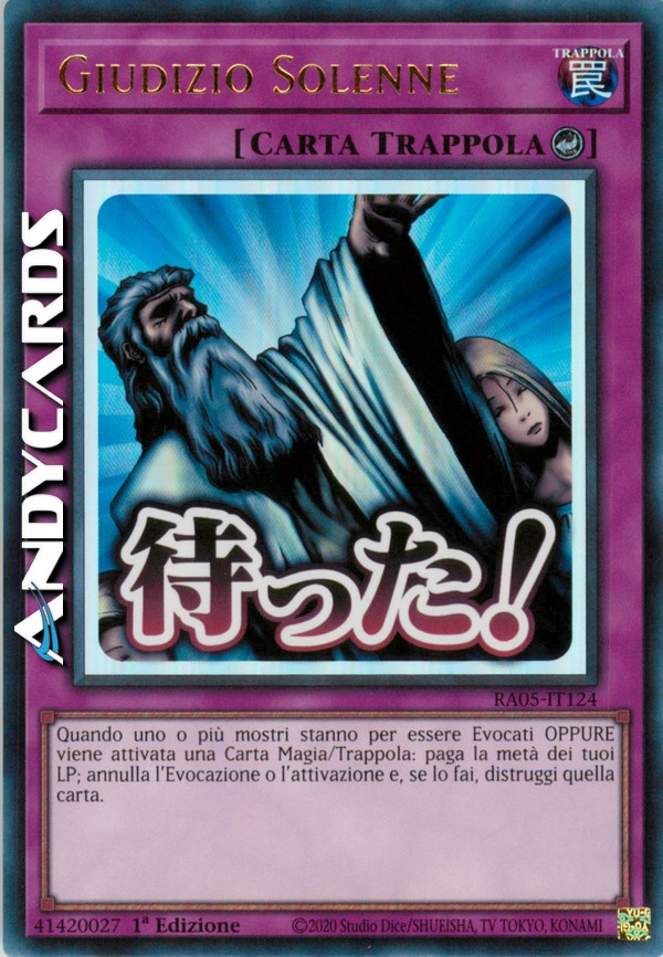 Paga la metà dei tuoi Life Points. Annulla l'attivazione di una Carta Magia/Carta Trappola/Evocazione Normale/Evocazione per Scoperta/Evocazione Speciale e distruggi la Carta Magia, Carta Trappola o il mostro Evocato.