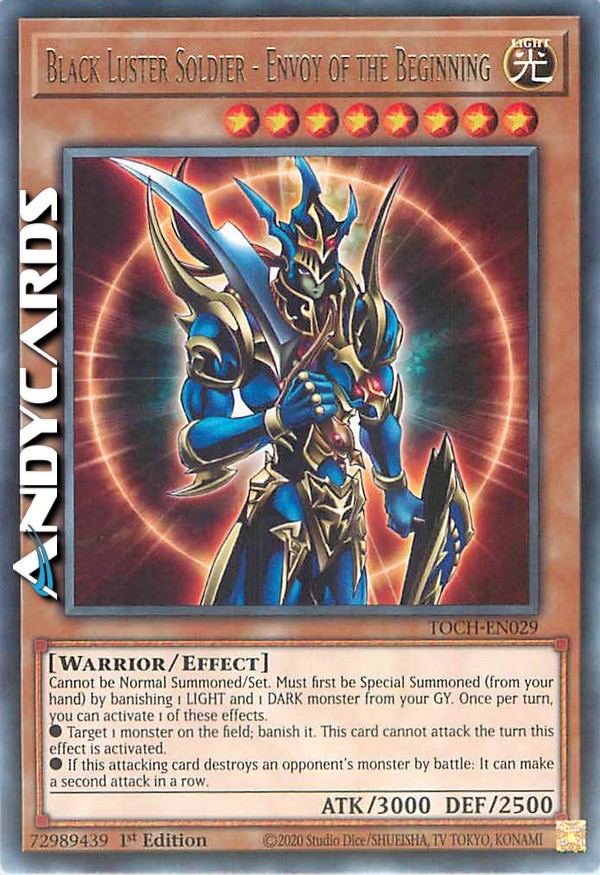 Non può essere Evocato Normalmente/Posizionato. Deve prima essere Evocato Specialmente (dalla tua mano) bandendo 1 mostro LUCE e 1 mostro OSCURITÀ dal tuo Cimitero. Una volta per turno, puoi attivare 1 di questi effetti.