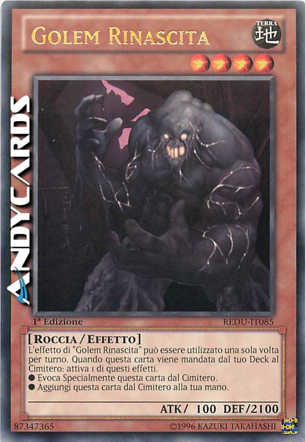 L'effetto di "Golem Rinascita" può essere utilizzato una sola volta per turno. Quando questa carta viene mandata dal tuo Deck al Cimitero: attiva 1 di questi effetti.