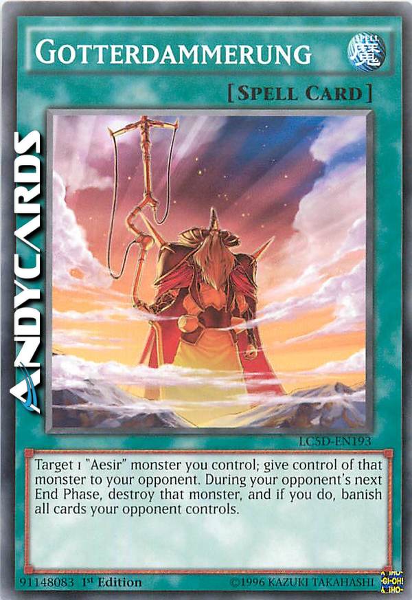 Scegli come bersaglio 1 mostro "Aesir" che controlli; dai il controllo di quel mostro al tuo avversario. Durante la prossima End Phase del tuo avversario, distruggi quel mostro e, se lo fai, bandisci tutte le carte controllate dal tuo avversario.