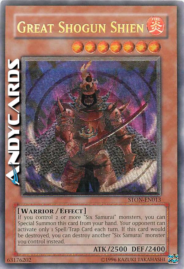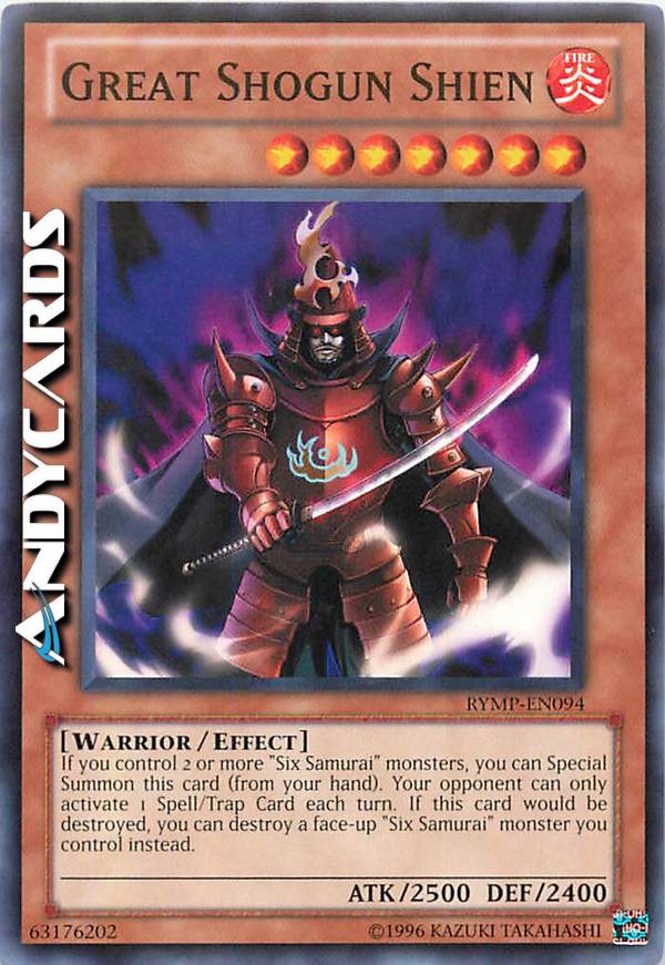 Se controlli 2 o più mostri "Sei Samurai", puoi Evocare tramite Evocazione Speciale questa carta dalla tua mano. Il tuo avversario può attivare solo 1 Carta Magia o Trappola ogni turno. Se questa carta verrebbe distrutta, puoi distruggere invece un mostro "Sei Samurai" che controlli.