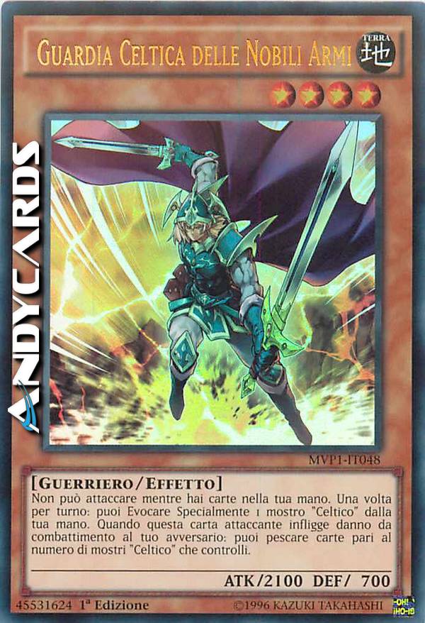 Non può attaccare mentre hai carte nella tua mano. Una volta per turno: puoi Evocare Specialmente 1 mostro "Celtico" dalla tua mano. Quando questa carta attaccante infligge danno da combattimento al tuo avversario: puoi pescare carte pari al numero di mostri "Celtico" che controlli.
