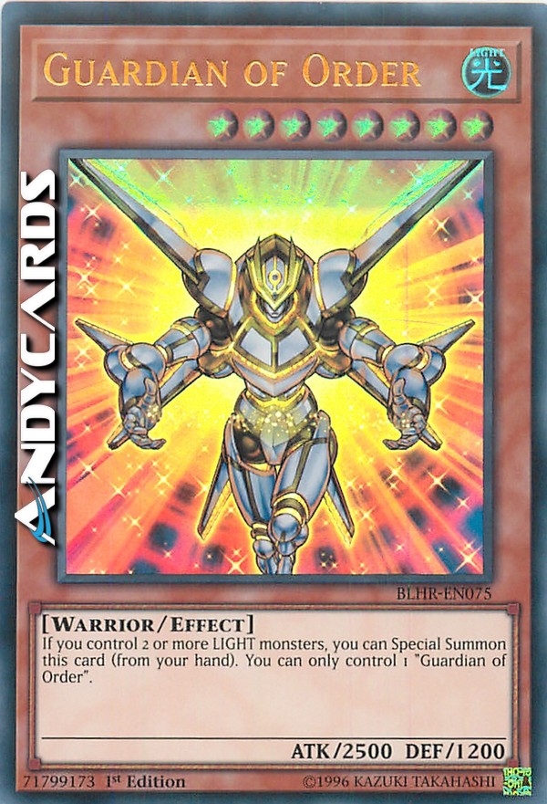 Se controlli 2 o più mostri LUCE, puoi Evocare tramite Evocazione Speciale questa carta dalla tua mano. Puoi controllare 1 solo "Guardiano dell'Ordine".