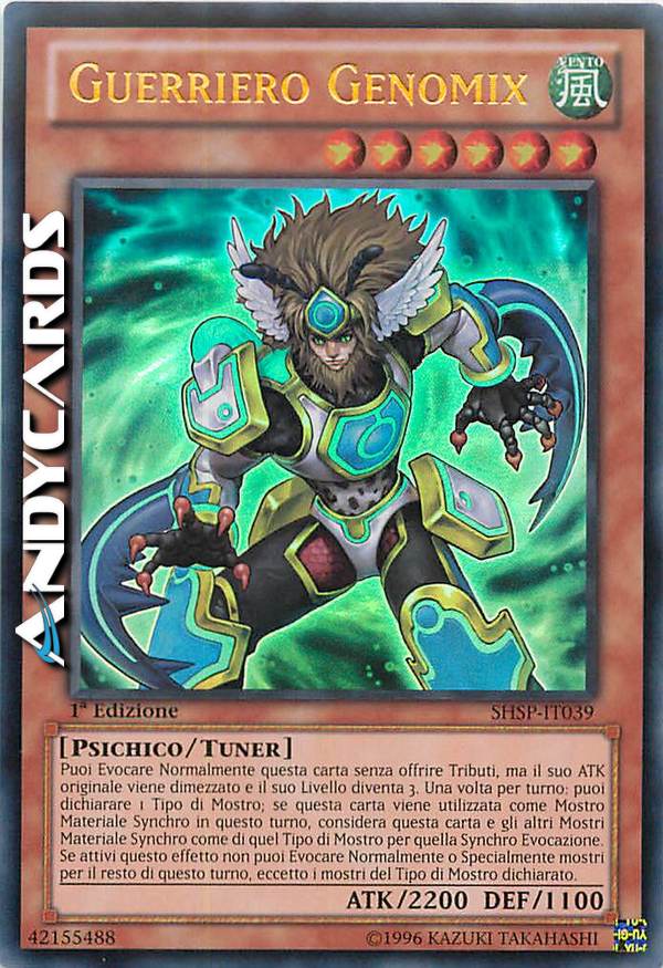 Puoi Evocare Normalmente questa carta senza offrire Tributi, ma il suo ATK originale viene dimezzato e il suo Livello diventa 3. Una volta per turno: puoi dichiarare 1 Tipo di Mostro; se questa carta viene utilizzata come Mostro Materiale Synchro in questo turno, considera questa carta e gli altri Mostro Materiale Synchro come di quel Tipo di Mostro per quella Synchro Evocazione. Se attivi questo effetto non puoi Evocare Normalmente o Specialmente mostro per il resto di questo turno, eccetto i mostri del Tipo di Mostro dichiarato.