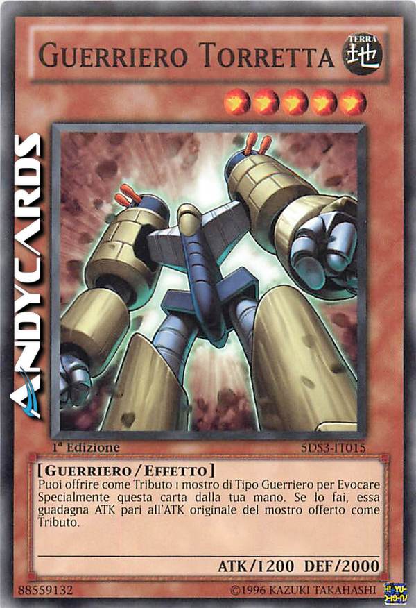Puoi offrire come tributo un mostro di tipo guerriero per evocare tramite evocazione speciale questa carta dalla tua mano.Se lo fai,essa guadagna ATK pari all'ATK originale del mostro offerto come tributo.