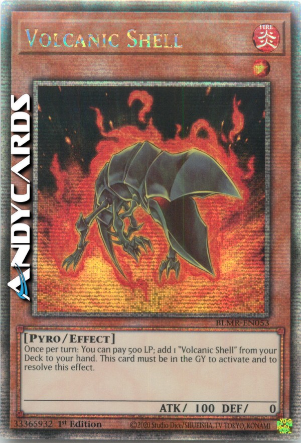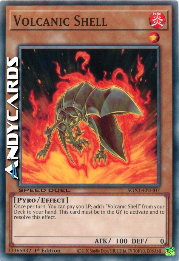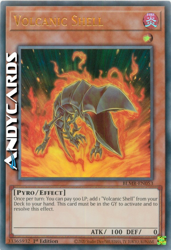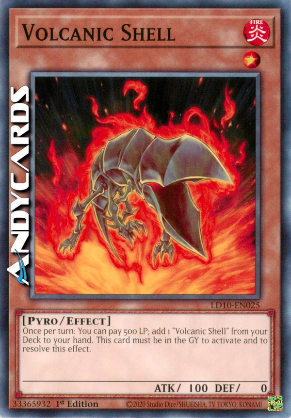 Once per turn: You can pay 500 LP; add 1 "Volcanic Shell" from your Deck to your hand. This card must be in the GY to activate and to resolve this effect.