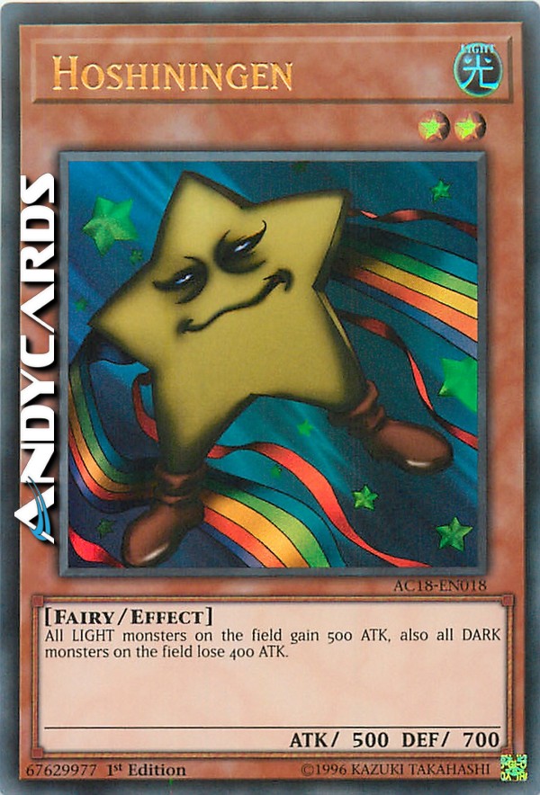 Fino a quando questa carta resta scoperta sul Terreno, aumenta l'ATK di tutti i mostri LUCE di 500 punti mentre diminuisci l'ATK di tutti i mostri OSCURITÀ di 400 punti.