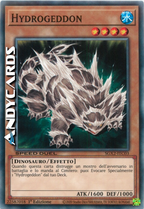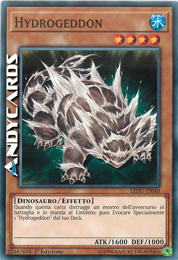 Quando questa carta distrugge un mostro del tuo avversario in battaglia e lo manda al Cimitero, puoi Evocare tramite Evocazione Speciale 1 "Hydrogeddon" dal tuo deck.