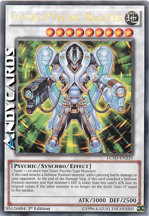 1 Tuner + 1 or more non-Tuner Psychic-Type Monsters. During battle between this attacking card and a Defense Position monster whose DEF is lower than the ATK of this card, inflict the difference as Battle Damage to your opponent's Life Points. If this card attacks a Defense Position monster whose DEF is lower than the ATK of this card, gain Life Points equal to the difference at the end of the Damage Step.