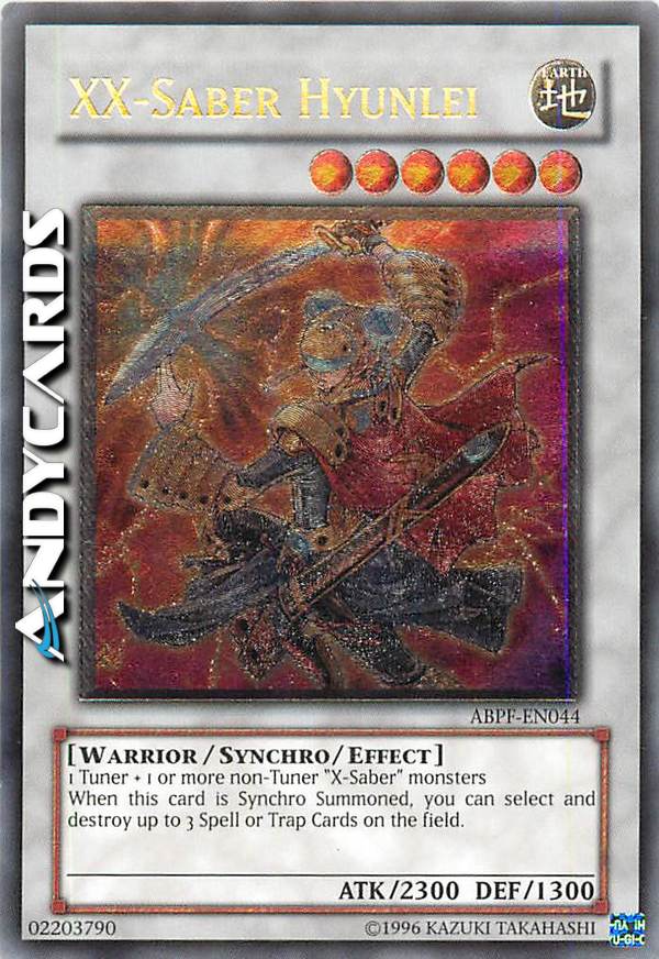 1 Tuner + 1 or more non-Tuner "X-Saber" monsters. When this card is Synchro Summoned, you can select and destroy up to 3 Spell or Trap Cards on the field.