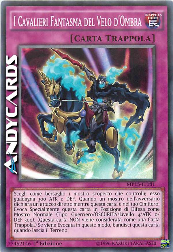Scegli come bersaglio 1 mostro scoperto che controlli; esso guadagna 300 ATK e DEF. Quando un mostro dell'avversario dichiara un attacco diretto mentre questa carta è nel tuo Cimitero: Evoca Specialmente questa carta in Posizione di Difesa come Mostro Normale (Tipo Guerriero/OSCURITÀ/Livello 4/ATK 0/DEF 300). (Questa carta NON viene considerata come una Carta Trappola.) Se viene Evocata in questo modo, bandisci questa carta quando lascia il Terreno.