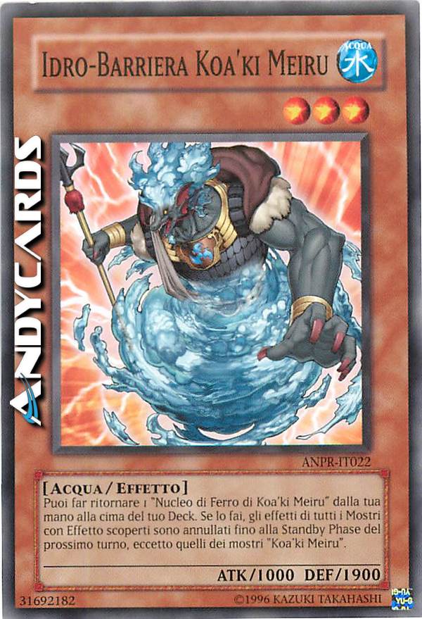 Puoi far ritornare 1 "Nucleo di Ferro di Koa'ki Meiru" dalla tua mano alla cima del tuo Deck. Se lo fai, gli effetti di tutti i Mostri con Effetto scoperti sono annullati fino alla Standby Phase del prossimo turno, eccetto quelli dei mostri "Koa'ki Meiru".