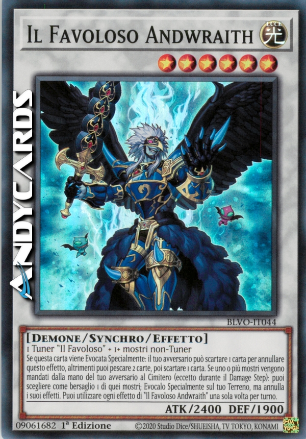Se questa carta viene Evocata Specialmente: il tuo avversario può scartare 1 carta per annullare questo effetto, altrimenti puoi pescare 2 carte, poi scartare 1 carta. Se uno o più mostri vengono mandati dalla mano del tuo avversario al Cimitero (eccetto durante il Damage Step): puoi scegliere come bersaglio 1 di quei mostri; Evocalo Specialmente sul tuo Terreno, ma annulla i suoi effetti. Puoi utilizzare ogni effetto di "Il Favoloso Andwraith" una sola volta per turno.