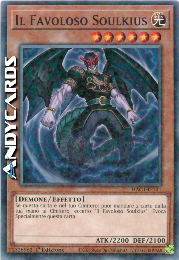 Se questa carta è nel tuo Cimitero: puoi mandare 2 carte, eccetto "Il Favoloso Soulkius", dalla tua mano al Cimitero; Evoca Specialmente questa carta dal Cimitero.