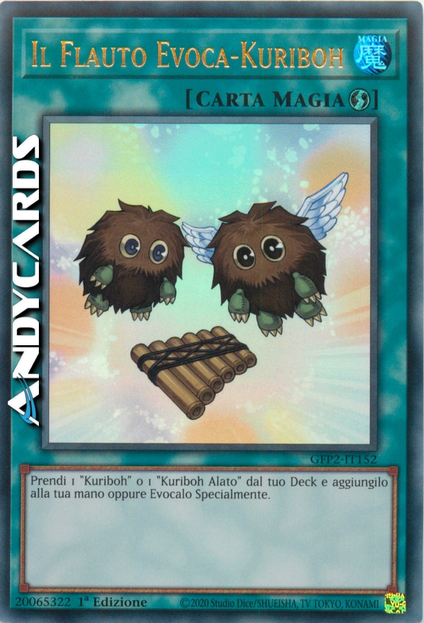 Aggiungi 1 "Kuriboh" o 1 "Kuriboh Alato" dal tuo Deck alla tua mano, OPPURE Evoca Specialmente 1 "Kuriboh" o 1 "Kuriboh Alato" dal tuo Deck.