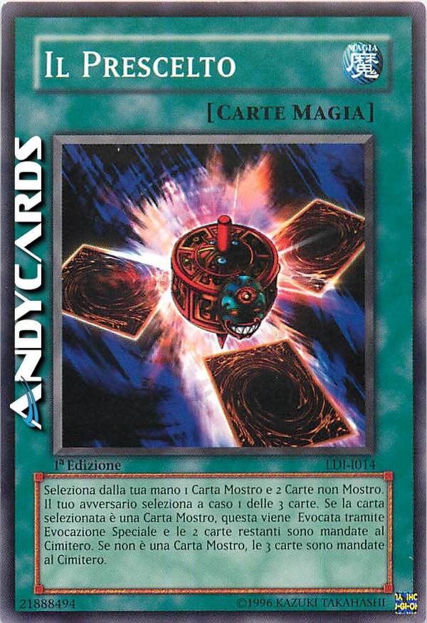 Seleziona dalla tua mano 1 Carta Mostro e 2 Carte non Mostro. Il tuo avversario seleziona a caso 1 delle 3 carte. Se la carta selezionata è una Carta Mostro, questa viene Evocata tramite Evocazione Speciale e le 2 carte restanti sono mandate al Cimitero. Se non è una Carta Mostro, le 3 carte sono mandate al Cimitero.