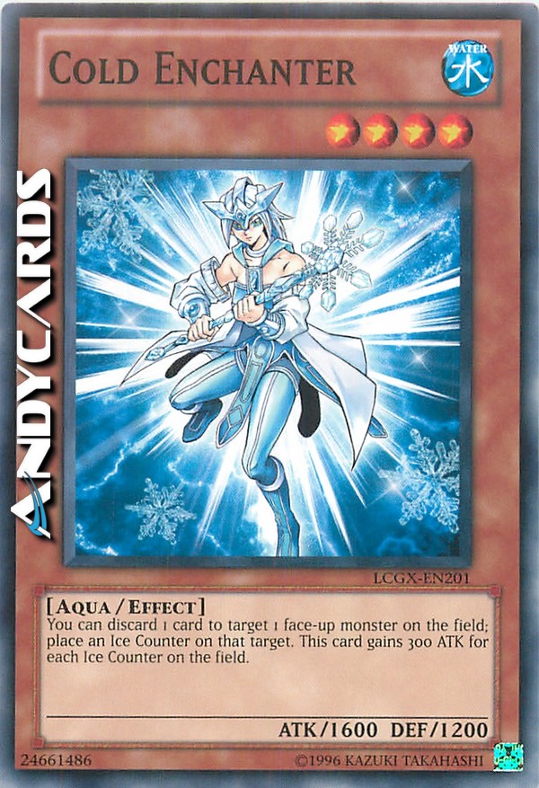 Puoi scartare 1 carta per scegliere come bersaglio 1 mostro scoperto sul Terreno; metti un Segnalino Ghiaccio su quel bersaglio. Questa carta guadagna 300 ATK per ogni Segnalino Ghiaccio sul Terreno.