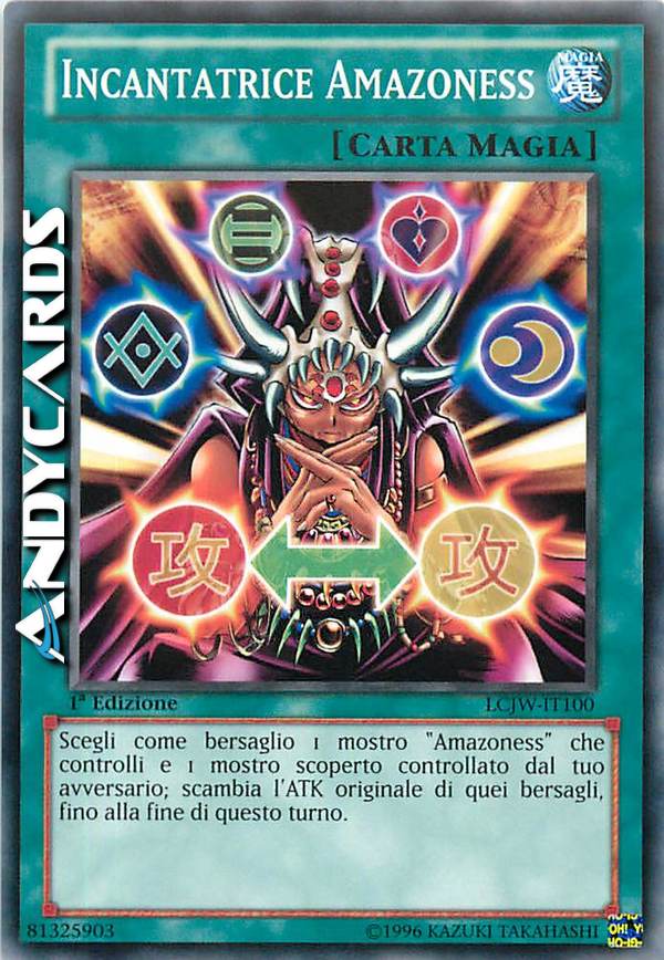 Scegli come bersaglio 1 mostro "Amazoness" che controlli e 1 mostro scoperto controllato dal tuo avversario; scambia l'ATK originale di quei bersagli, fino alla fine di questo turno.