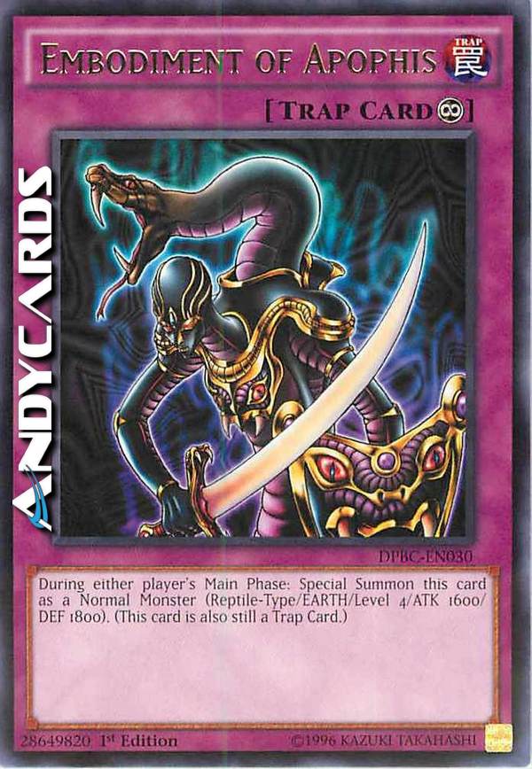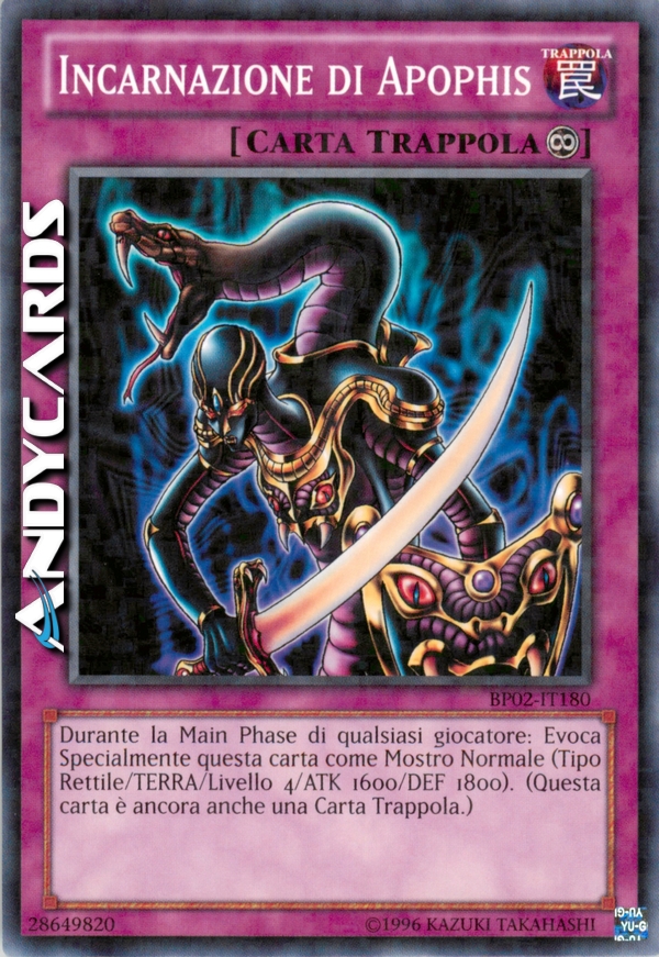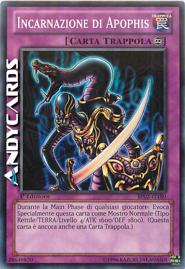 Durante la Main Phase di qualsiasi giocatore: Evoca Specialmente questa carta come Mostro Normale (Tipo Rettile/TERRA/Livello 4/ATK 1600/DEF 1800). (Questa carta è ancora anche una Carta Trappola.)