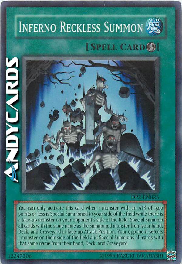 You can only activate this card when 1 monster with an ATK of 1500 points or less is Special Summoned to your side of the field while there is a face-up monster on your opponent's side of the field. Special Summon all cards with the same name as the Summoned monster from your hand, Deck, and Graveyard in face-up Attack Position. Your opponent selects 1 monster on their side of the field and Special Summons all cards with that same name from their hand, Deck, and Graveyard.