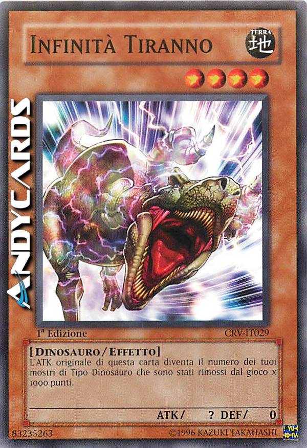 L'ATK originale di questa carta è pari al numero dei tuoi mostri di Tipo Dinosauro banditi x 1000.
