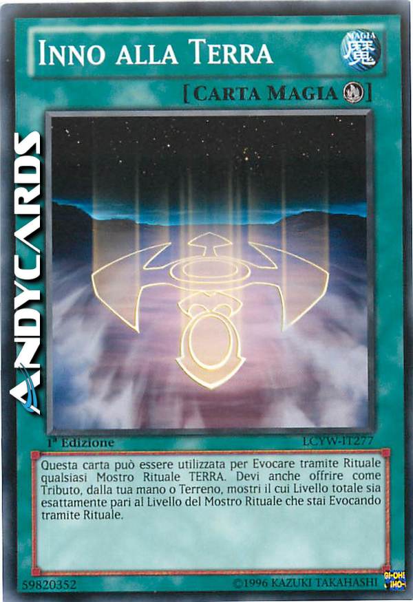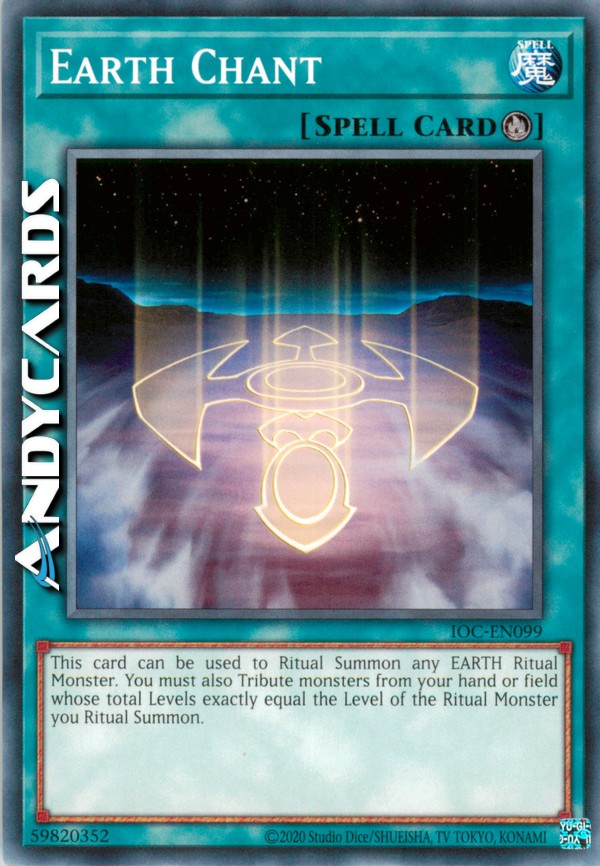 This card can be used to Ritual Summon any EARTH Ritual Monster. You must also Tribute monsters from your hand or field whose total Levels exactly equal the Level of the Ritual Monster you Ritual Summon.