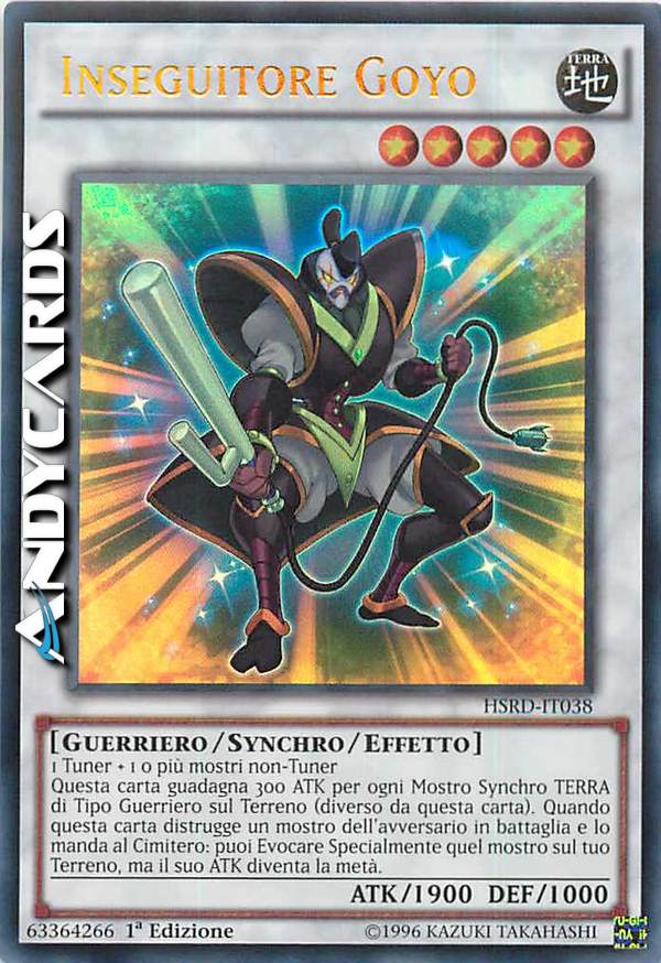1 Tuner + 1 o più mostri non-Tuner Questa carta guadagna 300 ATK per ogni Mostro Synchro TERRA di Tipo Guerriero sul Terreno (diverso da questa carta). Quando questa carta distrugge un mostro dell'avversario in battaglia e lo manda al Cimitero: puoi Evocare Specialmente quel mostro sul tuo Terreno, ma il suo ATK diventa la metà.