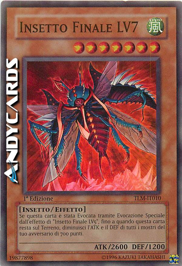 Se questa carta è stata Evocata tramite Evocazione Speciale dall'effetto di "Insetto Finale LV5", fino a quando questa carta resta sul Terreno, diminuisci l'ATK e il DEF di tutti i mostri del tuo avversario di 700 punti.
