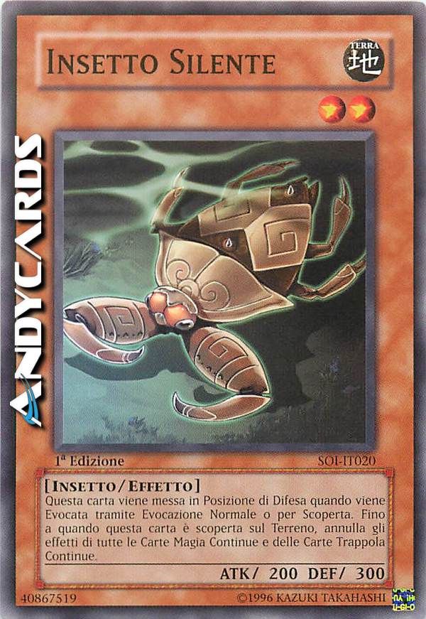 Questa carta viene messa in Posizione di Difesa quando viene Evocata tramite Evocazione Normale o per Scoperta. Fino a quando questa carta è scoperta sul Terreno, annulla gli effetti di tutte le Carte Magia Continue e delle Carte Trappola Continue.