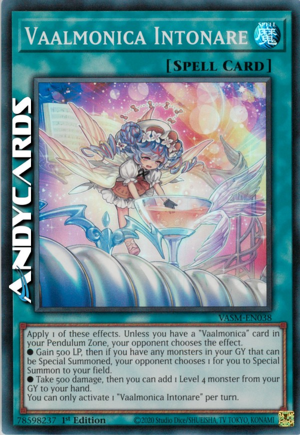 Applica 1 di questi effetti. A meno che tu abbia una carta "Vaalmonica" nella tua Zona Pendulum, il tuo avversario seleziona l'effetto.